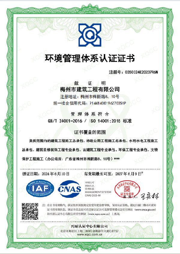 環境管理體系認證證書